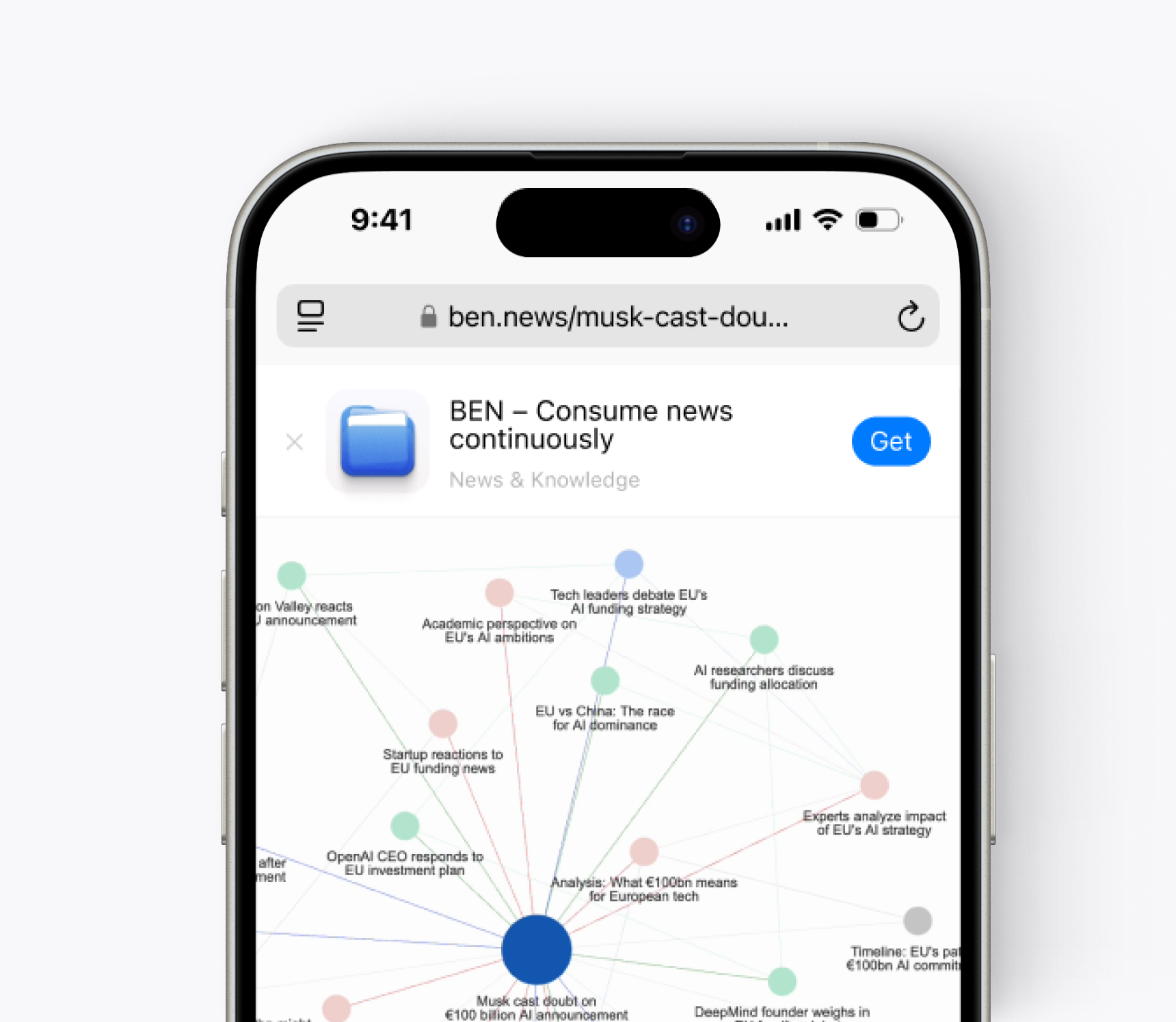 So when a User shares a topic out of BEN with someone who doesn’t have the app, he shares a cluster showcasing the different facets there are involved into the discussion and is able with BEN to also jump into investigation mode.